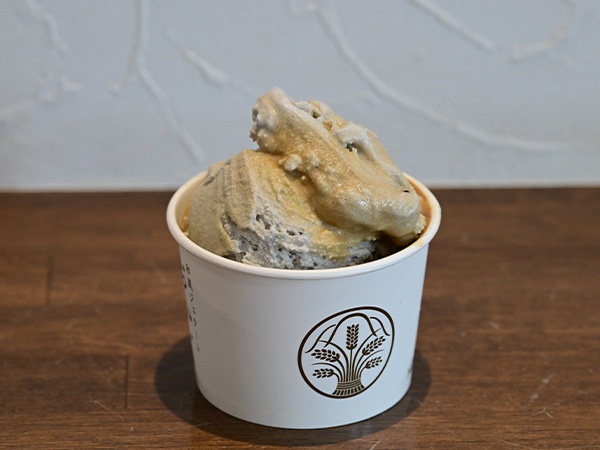 北限の御茶処村上のほうじ茶を使用したジェラート。ほのかに焦げた香りとさっぱりとした甘さが広がり心地よい。暑い夏にも、ほっと一息つける優しい味わい。