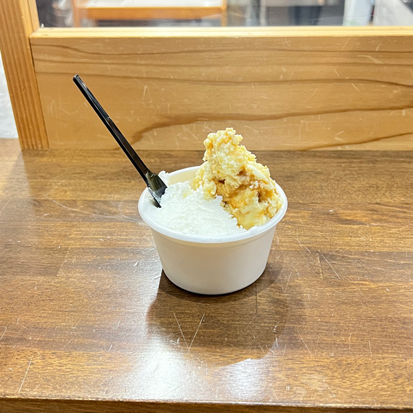 サクサクとしたかりんとうの食感が滑らかなさっぱりとしたミルクと調和。甘さと香ばしさが口に広がり舌をくすぐる。